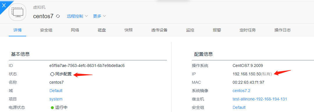 点击确定后,虚拟机进入配置阶段,等待虚拟机状态变为运行中,表示修改 IP 地址成功